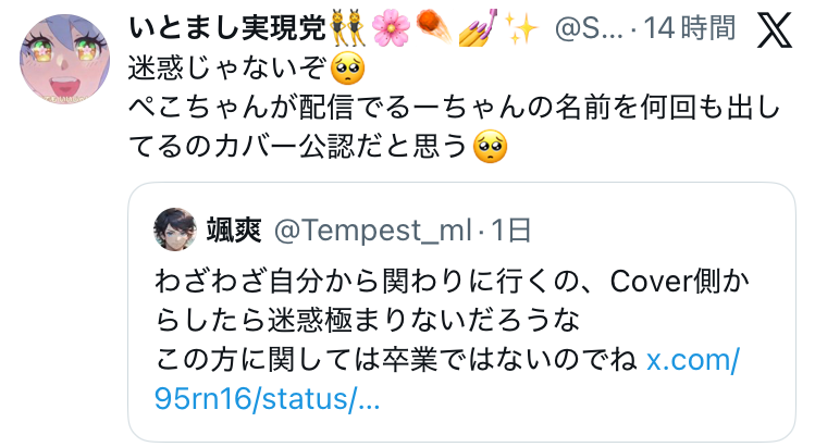 | … | 125無念Nameとしあき26/01/19(月)01:50:30No.1381200563そうだねx5>みけねこは配信内で未だにホロライブの悪口言ってますよねそんなやつを戻す理由ある? |