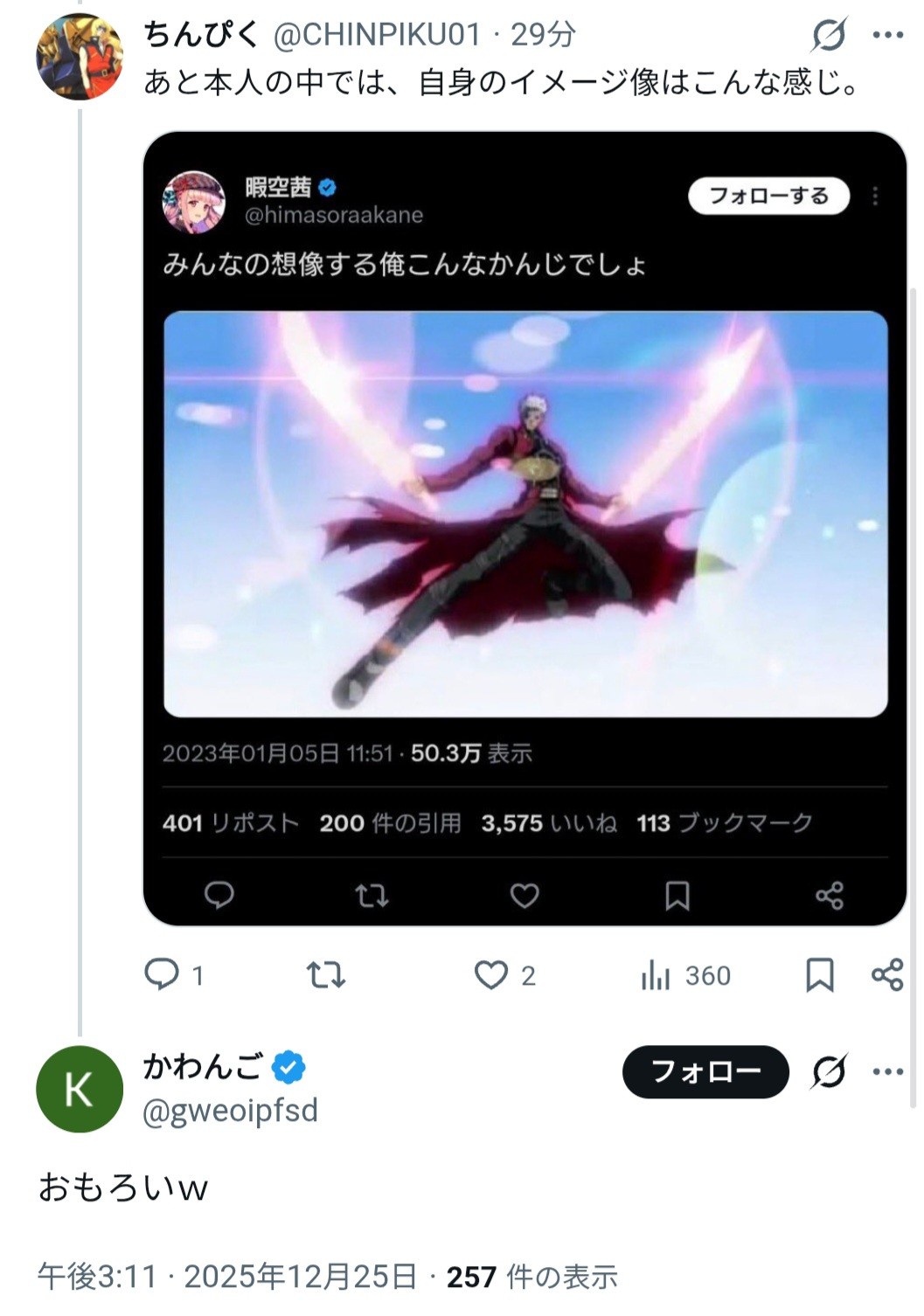 | … | 212無念Nameとしあき26/01/19(月)07:25:34No.1381213225そうだねx1>>「関わらない相手にしない」って唱えながら虹裏に突入してくるの意味がわからない |