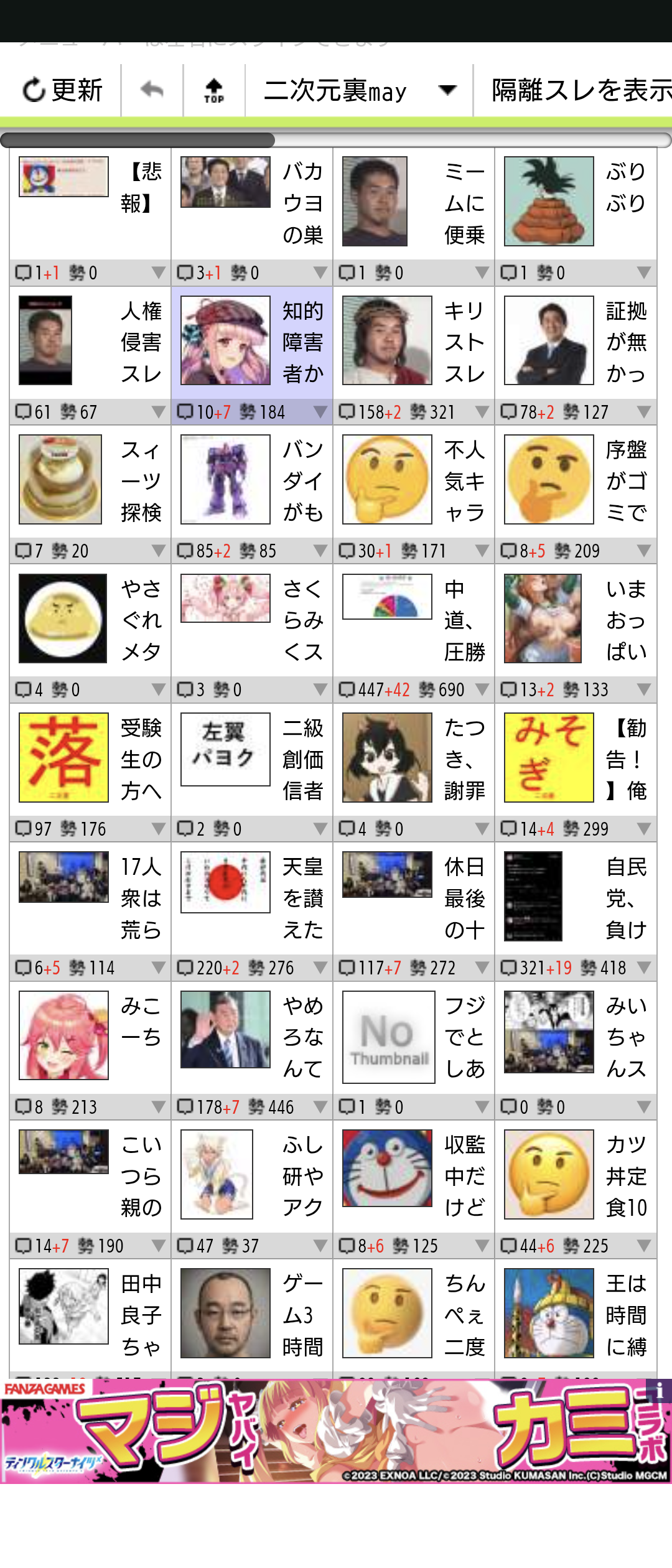 | … | 82無念Nameとしあき26/01/19(月)01:44:41No.1381200045そうだねx1>暇空スレ1個しか立ってないけど |