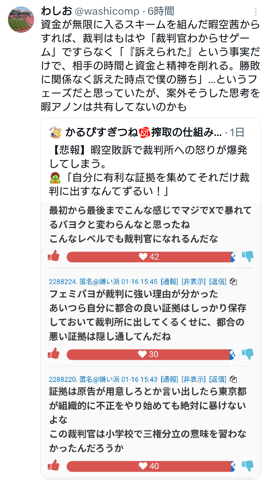 | … | 44無念Nameとしあき26/01/19(月)01:28:47No.1381198585そうだねx3>暇空の敗訴の判決文は本当に面白い |