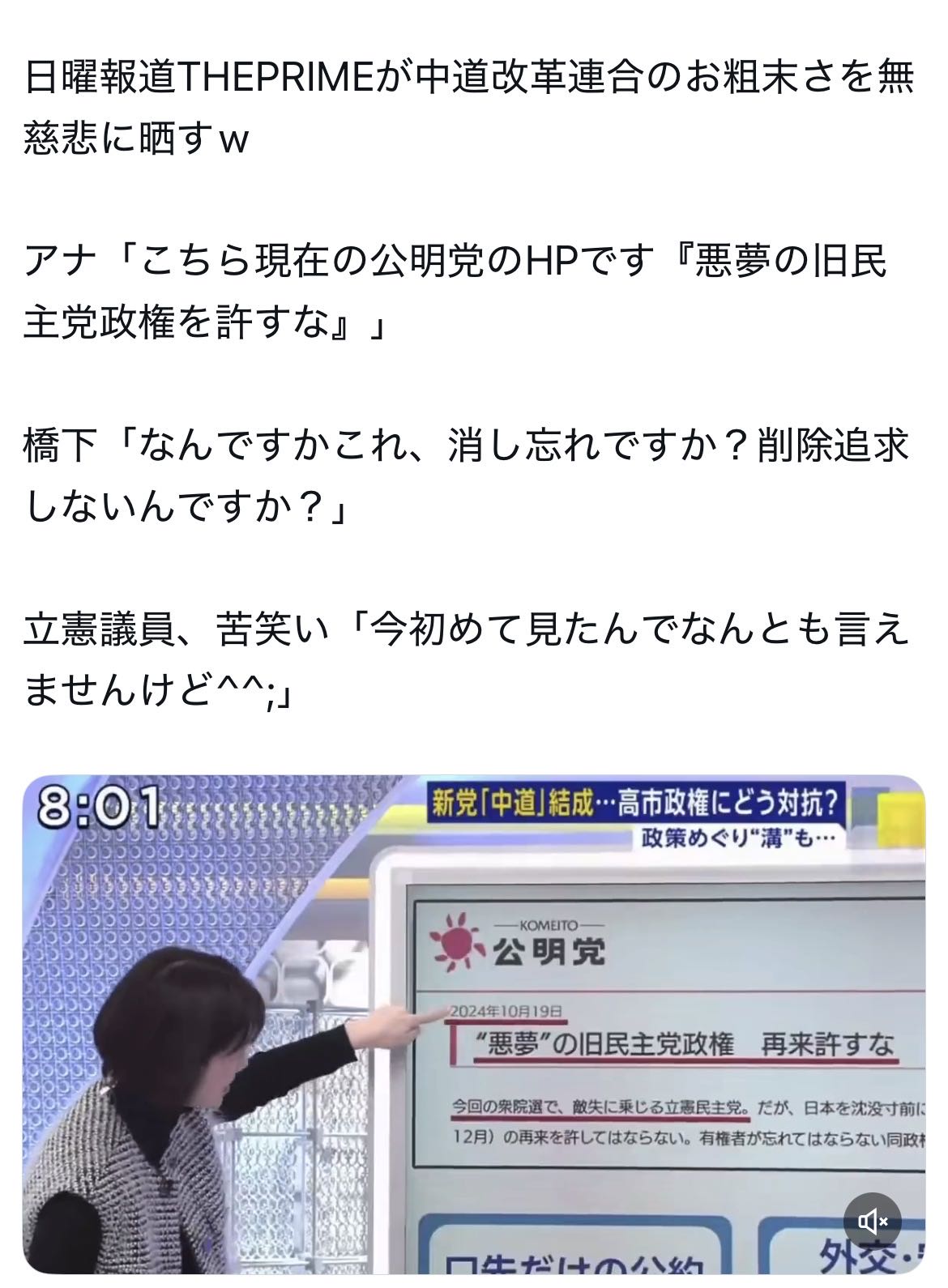 | … | 962無念Nameとしあき26/01/19(月)09:41:36No.1381225194+ 1768783296275.jpg-(532323 B) >Xだと中道改革連合の称賛だらけなのにここの意見はズレ過ぎてるな |