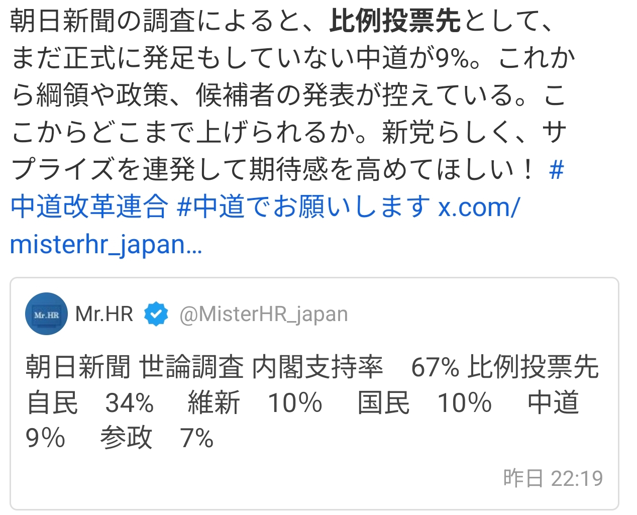 | … | 997無念Nameとしあき26/01/19(月)09:46:06No.1381225633+中道って党名にした影響で公明にも立憲にも入らない |