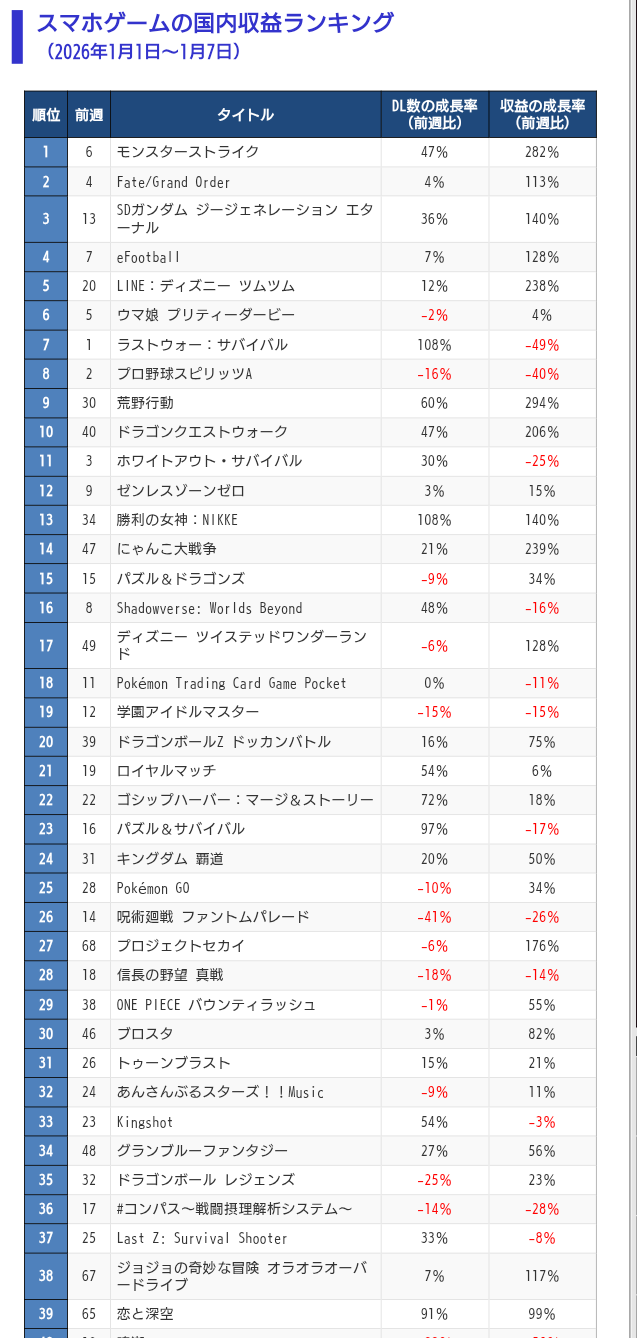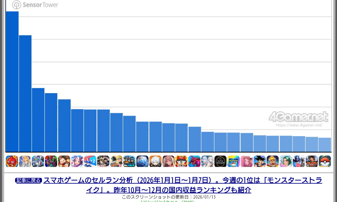 | … | 93無念Nameとしあき26/01/19(月)12:38:40No.1381248842+ソシャゲ売上煽りスレのランキング画像にも大体モンスト入ってていつもすげえなって思う |
