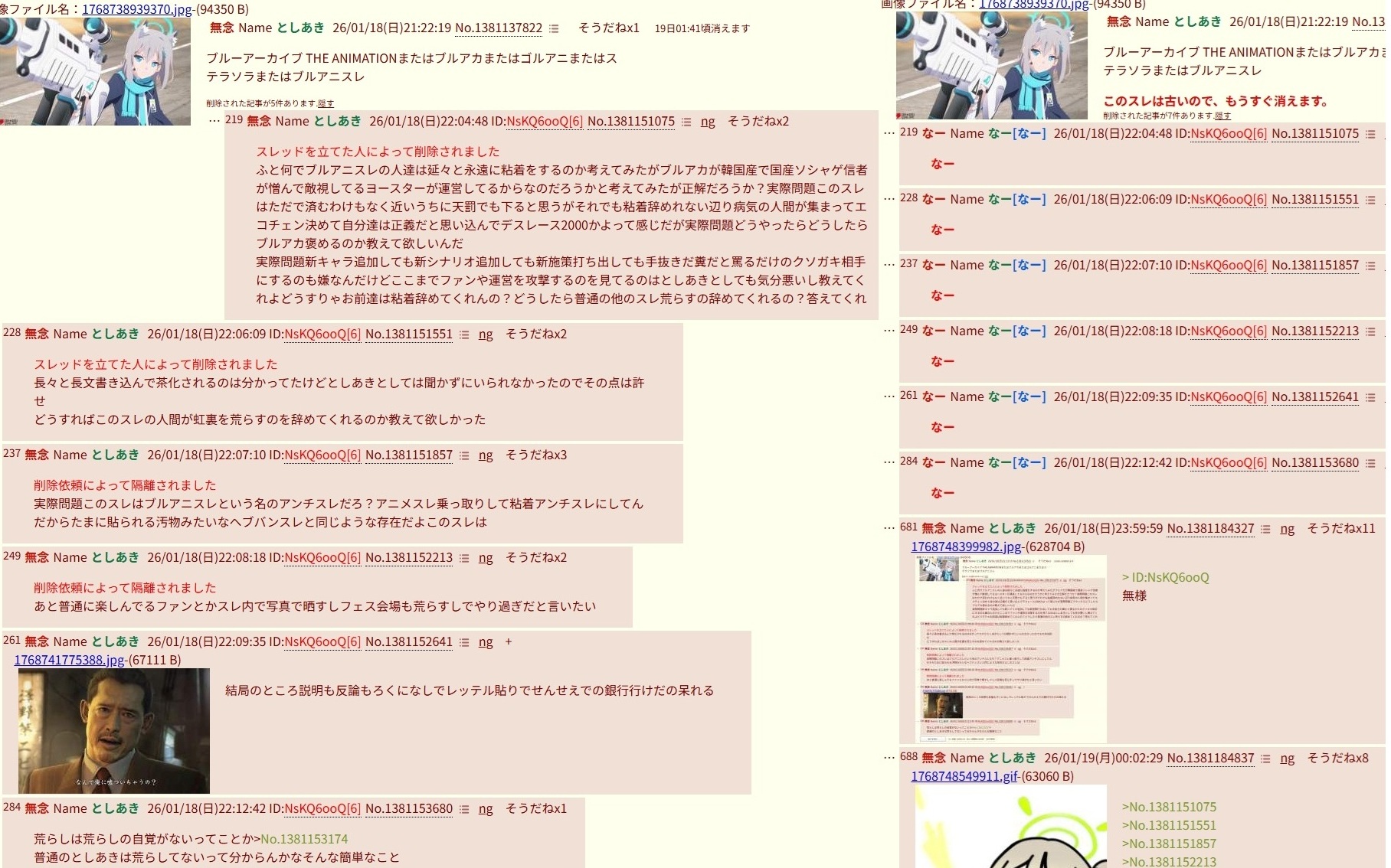 | … | 781無念Nameとしあき26/01/19(月)16:48:37No.1381287183+>政治叩き消えたらブルアカ粘着が沸いた |