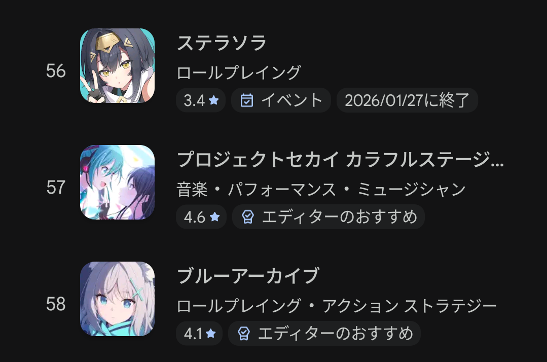| … | 69無念Nameとしあき26/01/19(月)12:28:49No.1381246888そうだねx5>モンストとかFGOとかウマ娘が軒並み自社決済になってるからセルランあてにならんよ |