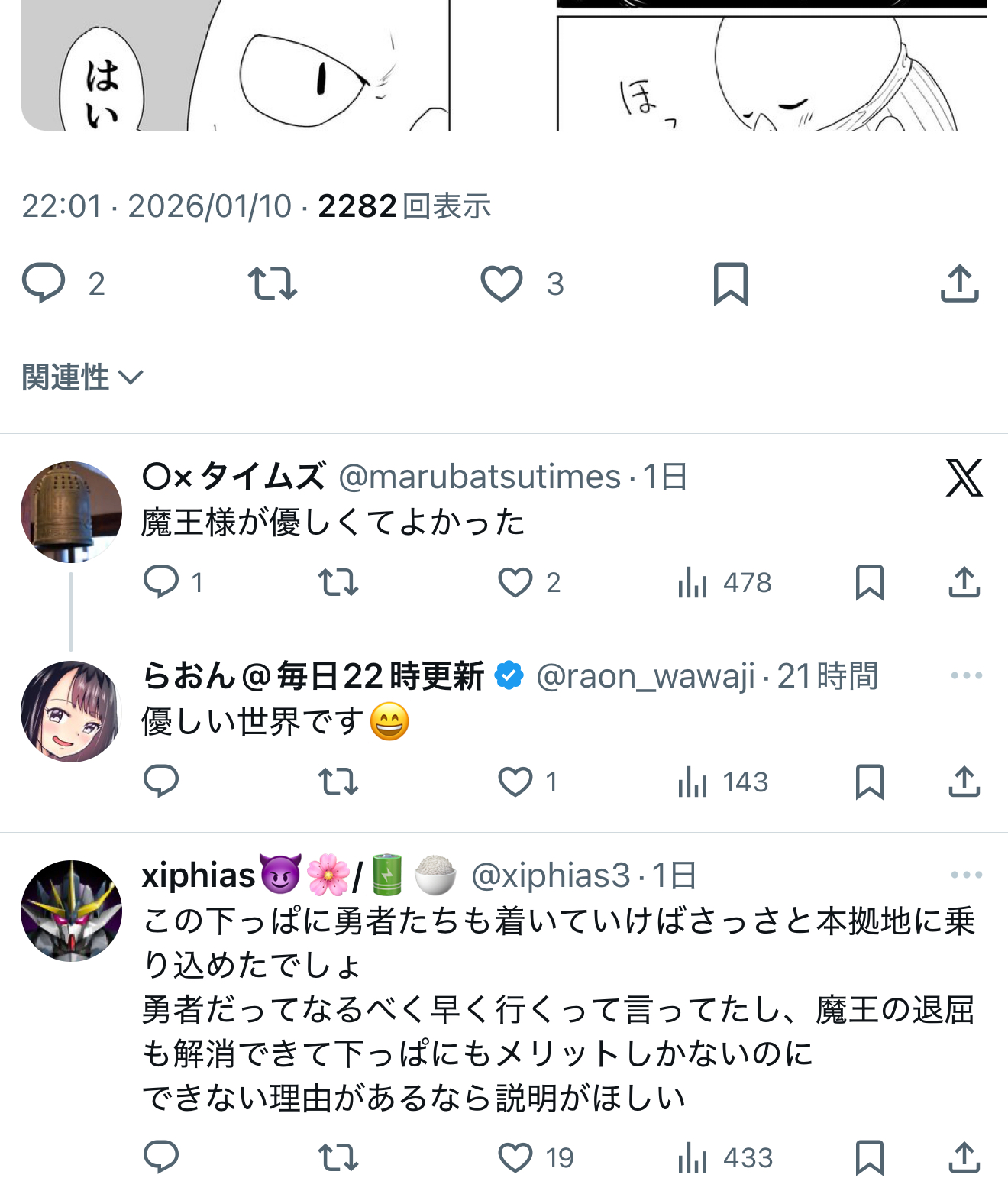 | … | 922無念Nameとしあき26/01/19(月)15:02:13No.1381271037+どんな性癖も肯定してくれるのは勇者と呼ぶに相応しい |