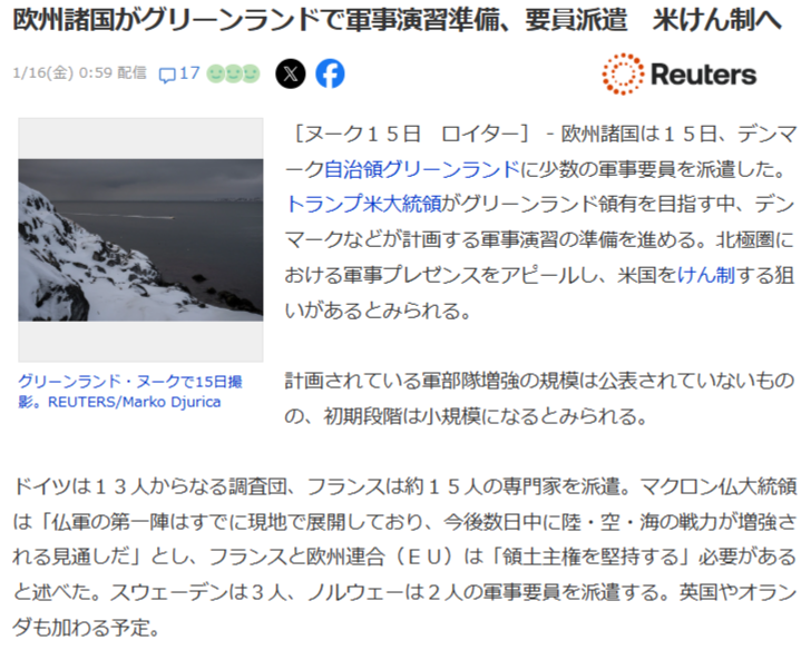 | … | 563無念Nameとしあき26/01/20(火)01:11:20No.1381409360+>ベネズエラやイランはともかくグリーンランドはフォローのしようがないだろ |