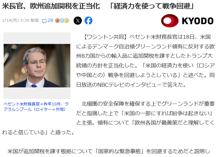 | … | 33無念Nameとしあき26/01/19(月)22:15:02No.1381371369+>日本は米とEUどっちに付くの |