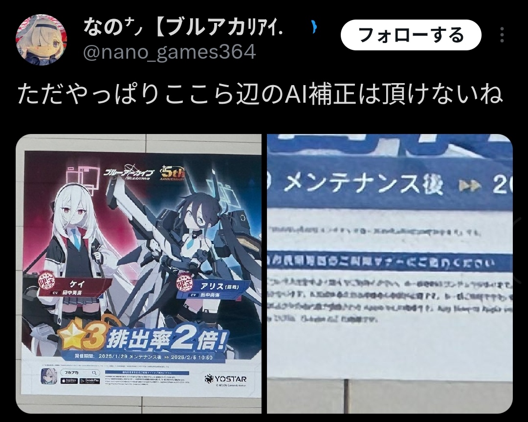 | … | 71無念Nameとしあき26/01/20(火)13:41:46No.1381477348そうだねx7 1768884106087.jpg-(244807 B) >>壷バンスレとかで国産ソシャゲはFF以下のグラフィック!って叩いてるのにブルアカに関しては絶賛するの好き |