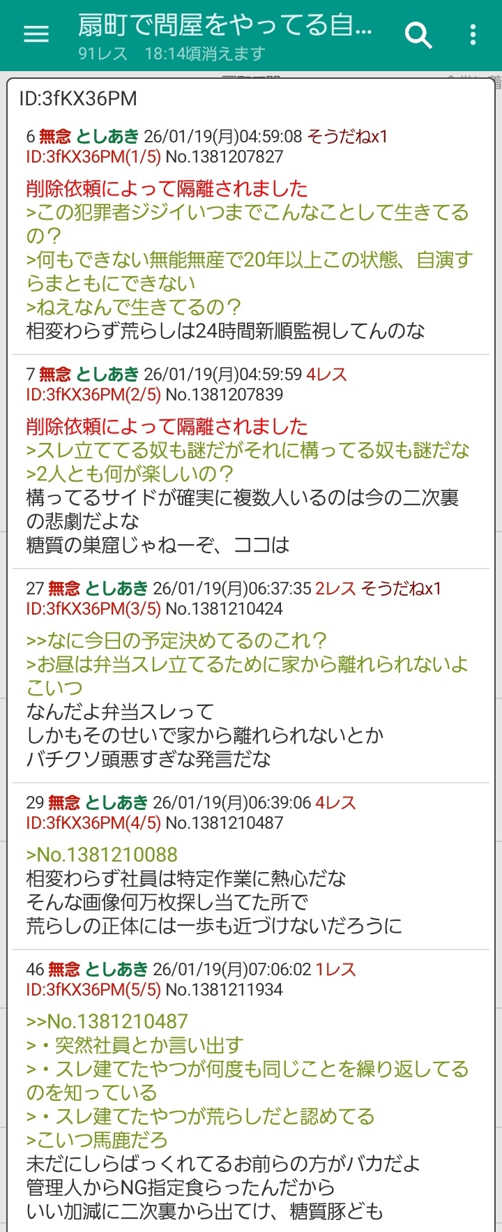 | … | 85無念Nameとしあき26/01/20(火)16:20:29No.1381501713そうだねx10自演書き込みの順番間違えて消したなスレ豚 |