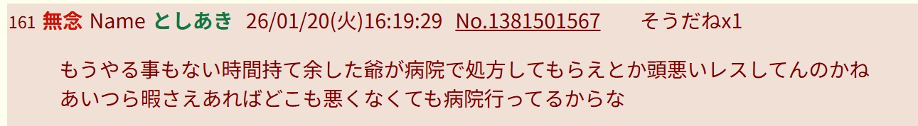 | … | 43無念Nameとしあき26/01/20(火)16:00:05No.1381498622+もへ爺さん、 |