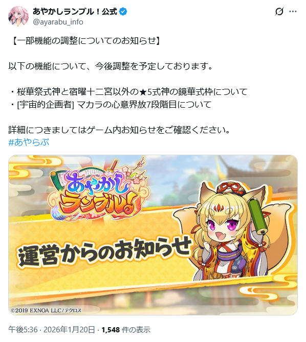 | … | 21無念Nameとしあき26/01/20(火)21:15:17No.1381568037+>調べたけど2025年5月迄の恒常+桜華式神らしいっス |