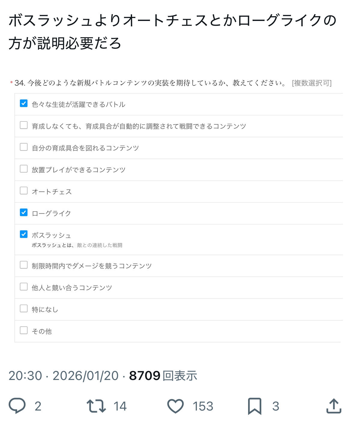 | … | 986無念Nameとしあき26/01/21(水)00:52:59No.1381617482そうだねx4>ずっと二重決済バグあったのに放置してた運営やせんせぇはバカすぎる |