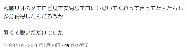 | … | 25無念Nameとしあき26/01/20(火)21:46:22No.1381576497そうだねx8>リオちゃん…君の犠牲は無駄にしないよ… |