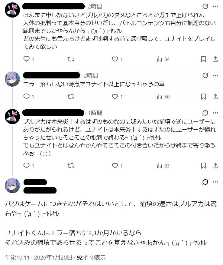 | … | 973無念Nameとしあき26/01/21(水)00:49:37No.1381616990そうだねx6課金の不具合についてマジになって語らなきゃいけないのは先生達の方なんだけどな…現実はこうして自分でエアプである証拠積み上げてるんだから笑うしかないよ |