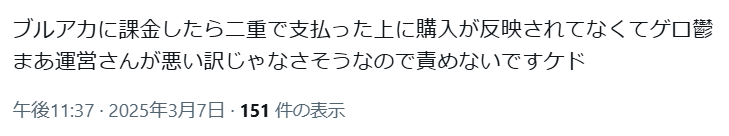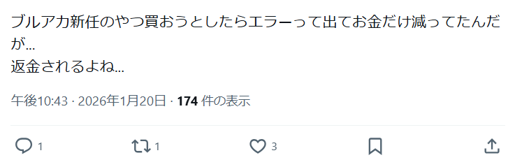 | … | 960無念Nameとしあき26/01/21(水)00:46:04No.1381616476+本気になれば二重決済されて石は補充されないも可能なのか |
