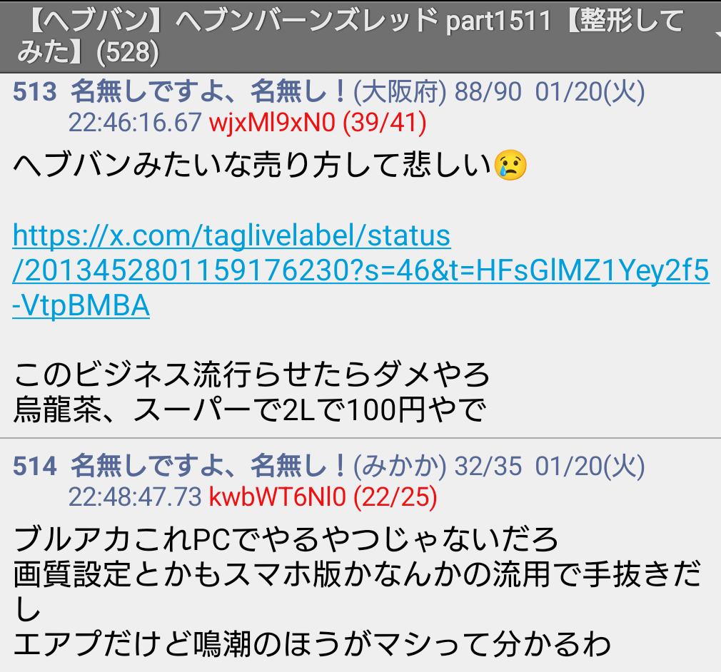 | … | 965無念Nameとしあき26/01/21(水)00:46:59No.1381616615そうだねx7 1768924019396.jpg-(83502 B) >顔と目真っ赤にしてブルアカのセルラン監視してるアンチの巣って言われてたけどほんとなんだなこのゴミスレ |