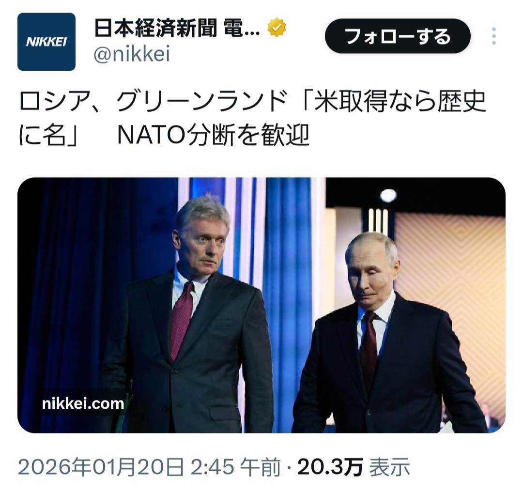 | … | 24無念Nameとしあき26/01/20(火)21:58:47No.1381579717そうだねx1ロシアはないわ |