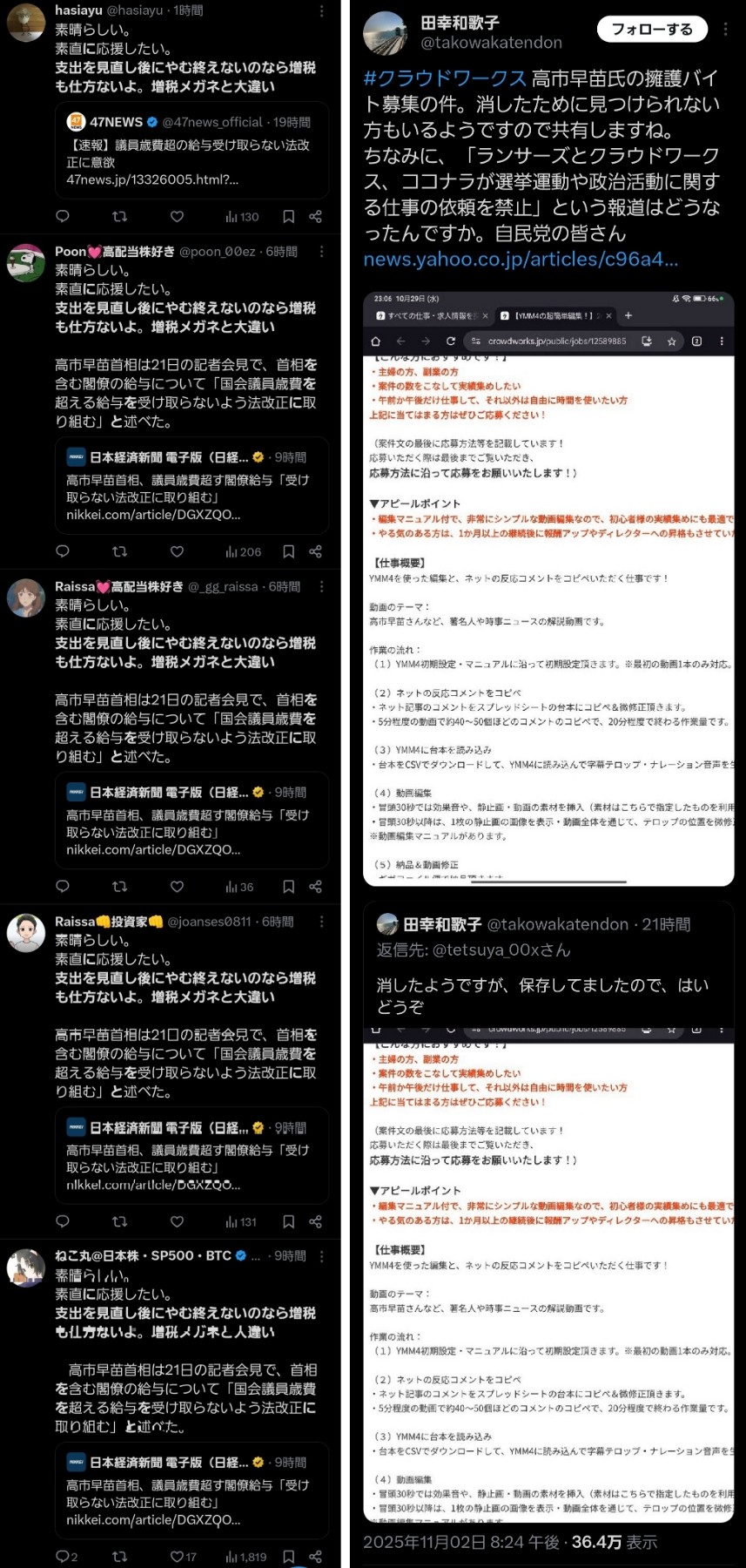 | … | 497無念Nameとしあき26/01/20(火)23:54:55No.1381608251+高市支持者は国民の政治的自由すら軽視し始めたのか |
