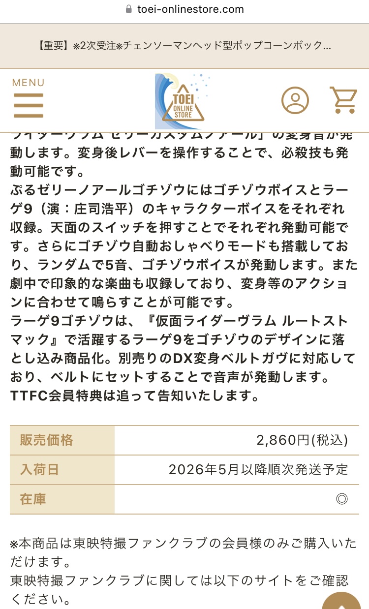 | … | 144無念Nameとしあき26/01/21(水)12:45:31No.1381676017+>俺もノワールまだ大丈夫だと思ってたから焦った、東映オンラインで予約完了だわ |