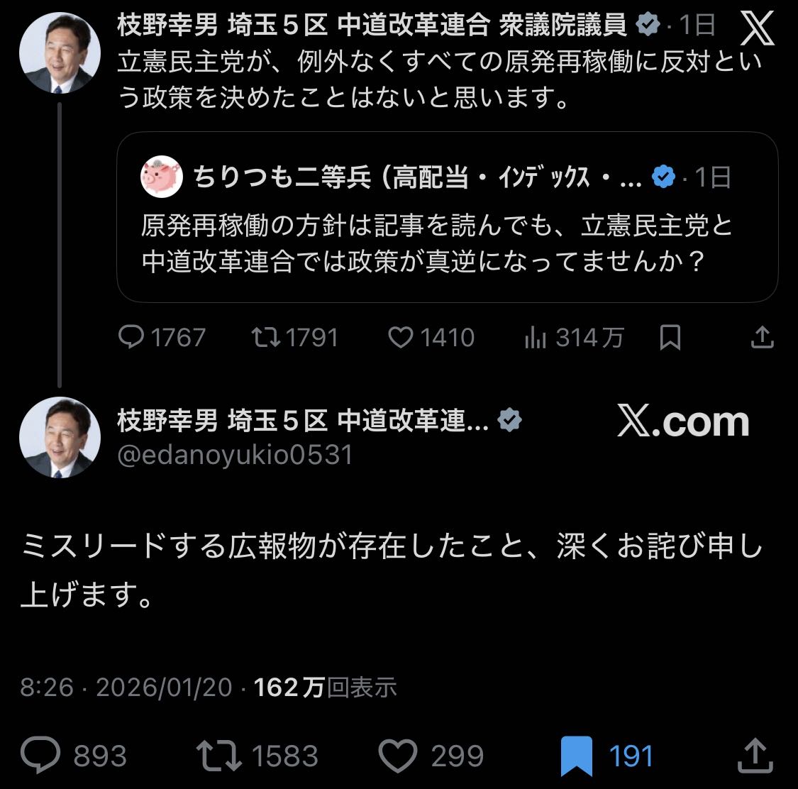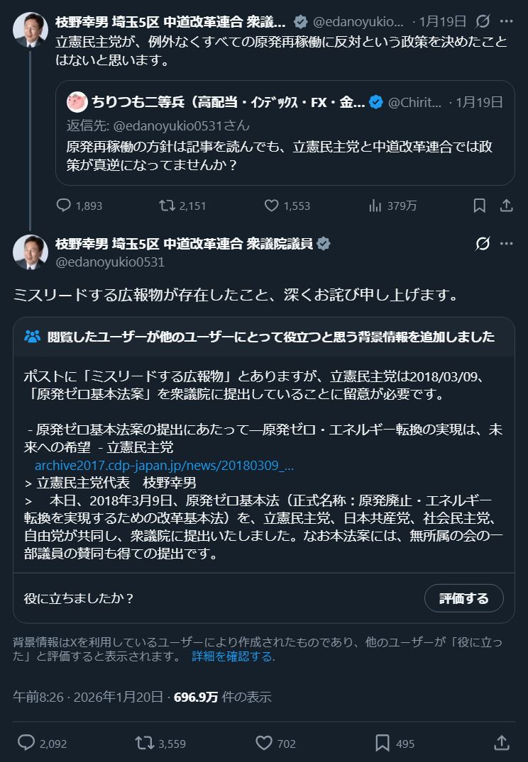 | … | 82無念Nameとしあき26/01/21(水)10:46:32No.1381657989+創価票欲しさにこれまでの反原発・反安保・反宗教をホイホイ捨てられる立憲のクソどもを見てると |