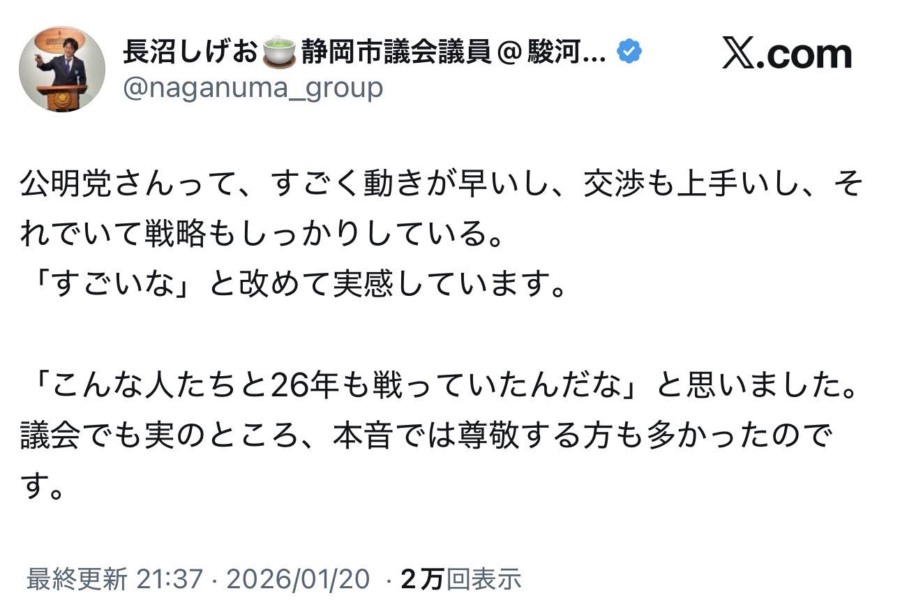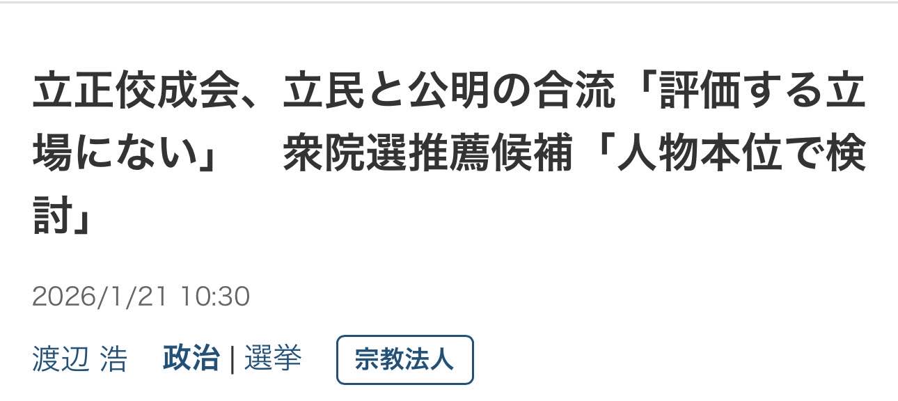 | … | 996無念Nameとしあき26/01/21(水)13:28:07No.1381683534+>立憲は公明に自ら吸収されに行ったのがマジで理解不能 |