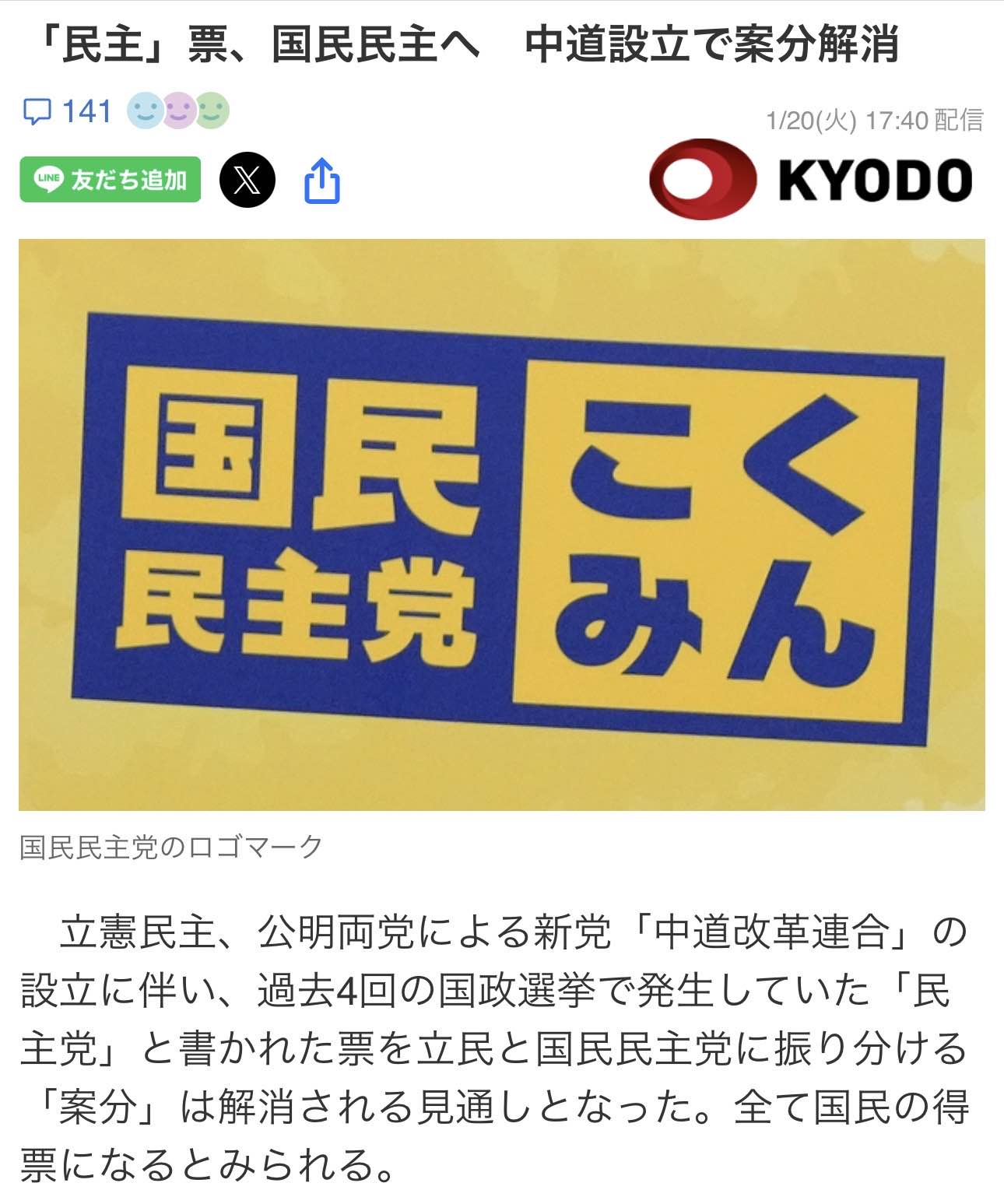 | … | 68無念Nameとしあき26/01/21(水)10:41:52No.1381657443そうだねx17「民主」票、国民民主へ 中道設立で案分解消 |