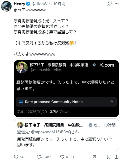 | … | 56無念Nameとしあき26/01/21(水)11:22:45No.1381662524+>ミスリードされる支持者も悪いんですよ |
