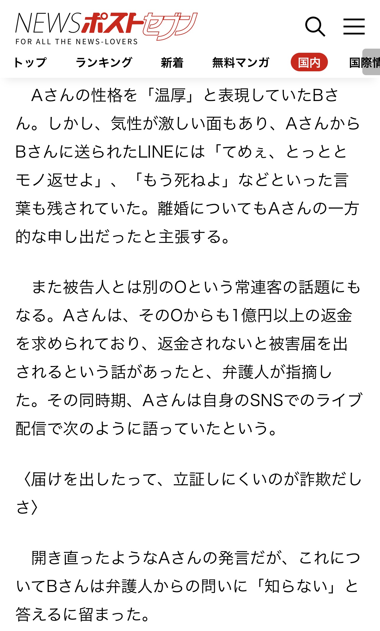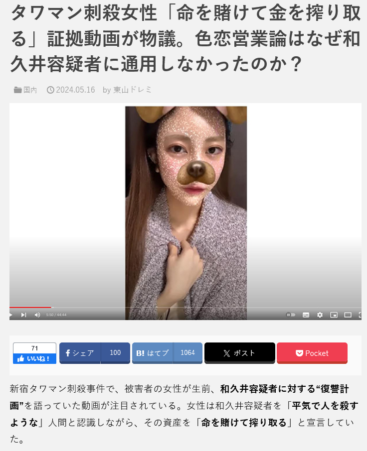 | … | 90無念Nameとしあき26/01/21(水)11:44:09No.1381665126そうだねx6「立証しにくいのが詐欺だしさ」被害キャバクラ経営女性(25)が和久井被告の他に受けていた「1億円以上の返金要求」、元夫に送られていた“激しいLINE文面”【新宿タワマン殺人・公判】 |