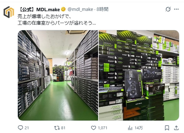 | … | 57無念Nameとしあき26/01/21(水)12:58:12No.1381678606そうだねx3こういう謎のBTO屋がリテール品買い占めてるからなくなるんでしょ |