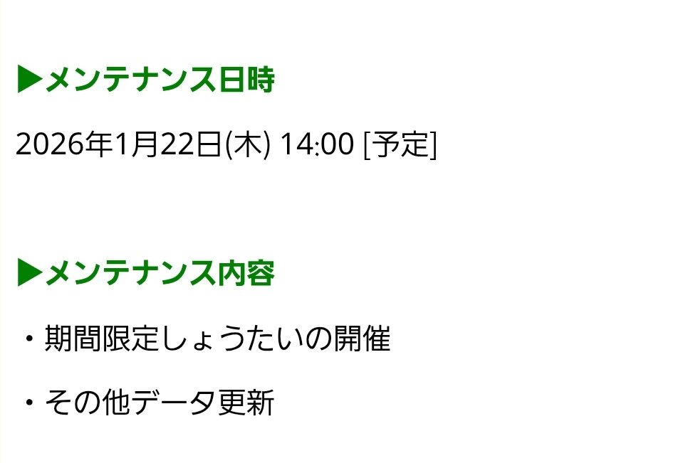 | … | 28無念Nameとしあき26/01/21(水)17:11:03No.1381718149+>3ってもう長いけど致命的なサーバーチャン案件とか長期メンテとか無い気がする |