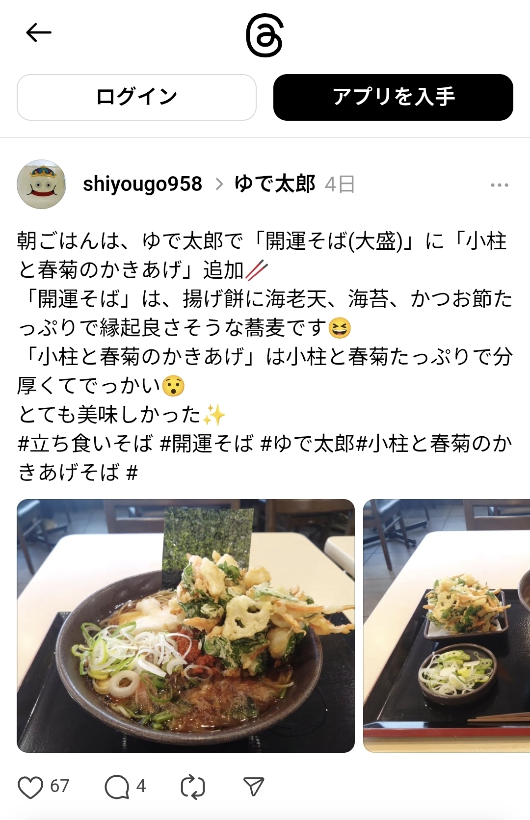 | … | 64無念Nameとしあき26/01/21(水)16:59:41No.1381716447そうだねx3ほんとにサンボ行ったことあるんすかぁ?かき揚げ蕎麦なんて出ないんすよぉ |