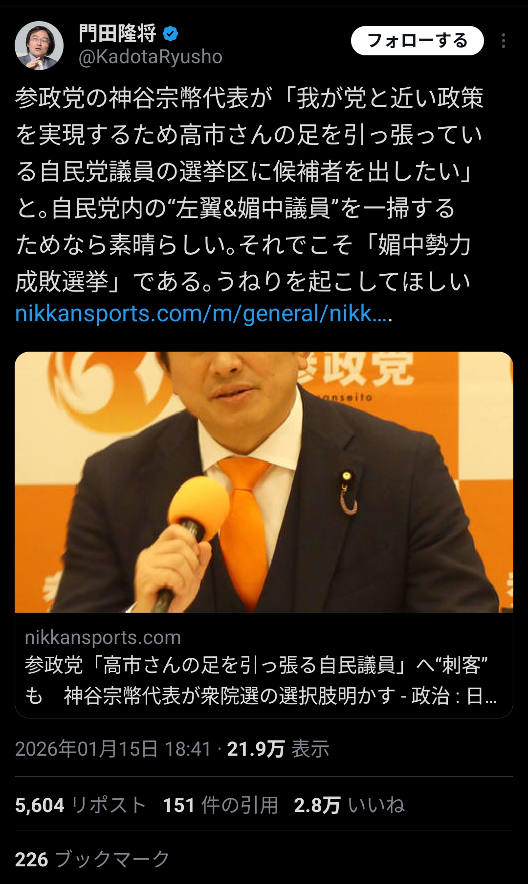 たいる【選挙・政治】 @tairu_election (2026/01/21 16:57:27)