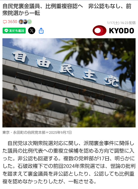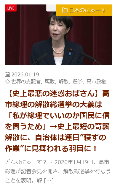 | … | 43無念Nameとしあき26/01/21(水)17:35:33No.1381722278そうだねx8>高市派のところには立候補送らない |