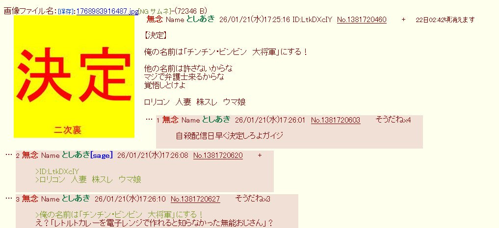| … | 17無念Nameとしあき26/01/21(水)17:56:58No.1381726307そうだねx3>1768985719922.jpg |