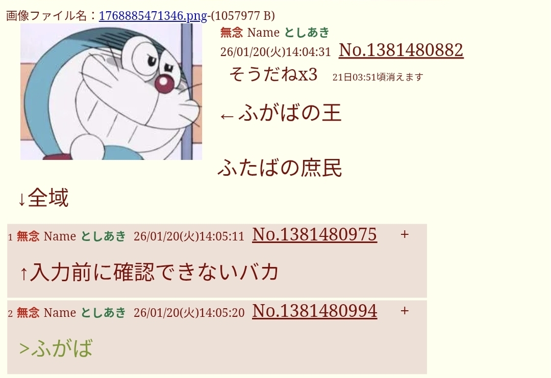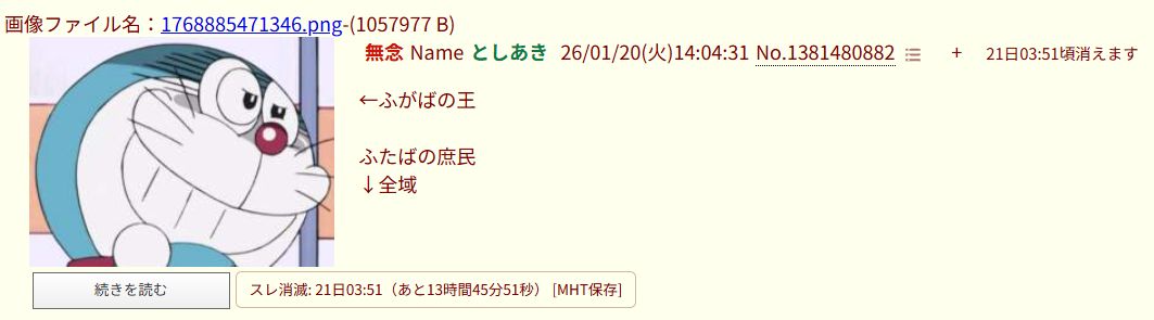 | … | 1なーNameなー26/01/21(水)19:32:57 ID:ATydYRoMNo.1381748623そうだねx3なー |
