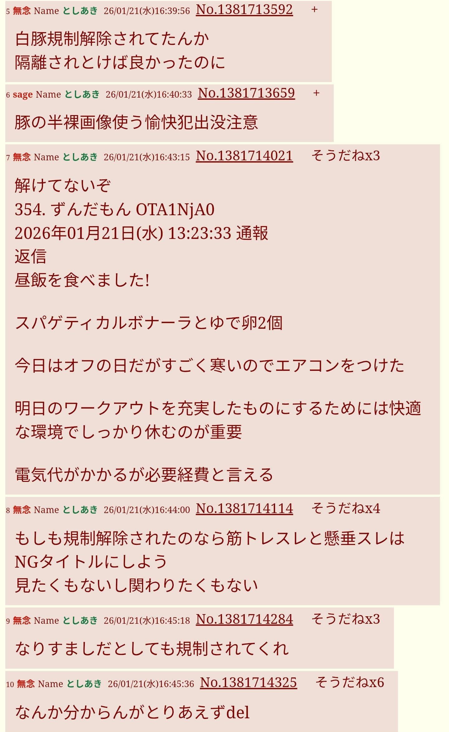 | … | 75無念Nameとしあき26/01/21(水)22:10:16No.1381798287+>だが別の変なのがスレあきに粘着してるから多分やり口変えたって勘違いされてるかも |
