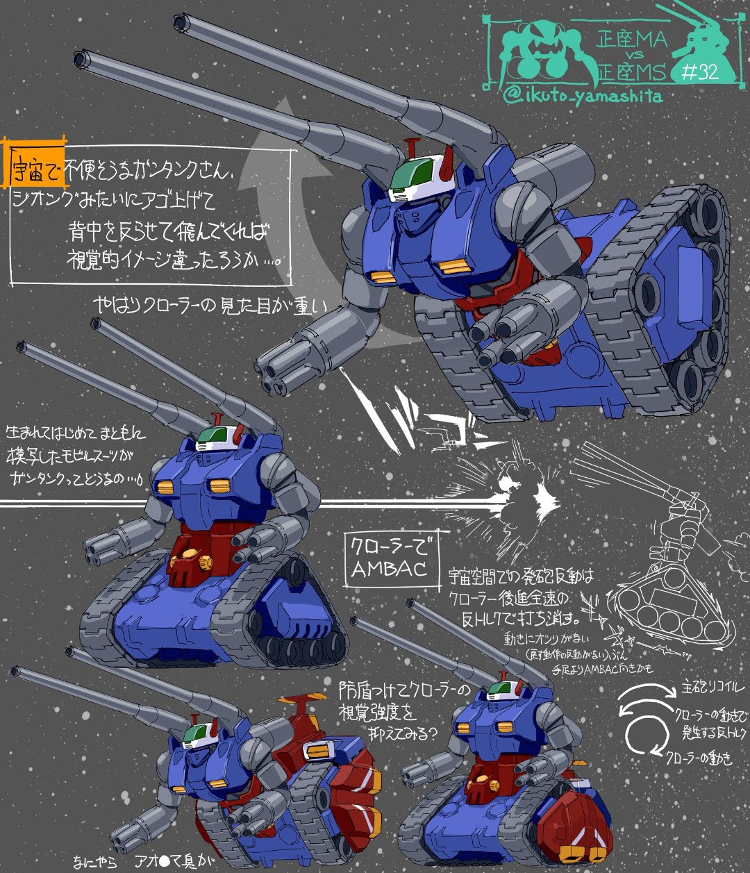| … | 29無念Nameとしあき26/01/21(水)21:02:36No.1381775874+月面や宇宙要塞内部で戦うならまだしも宇宙空間を履帯付けたまま飛んで戦うのは変すぎるし下半身をGメカBパーツかコアブースターユニットにして高火力高機動の機体にしたいね |