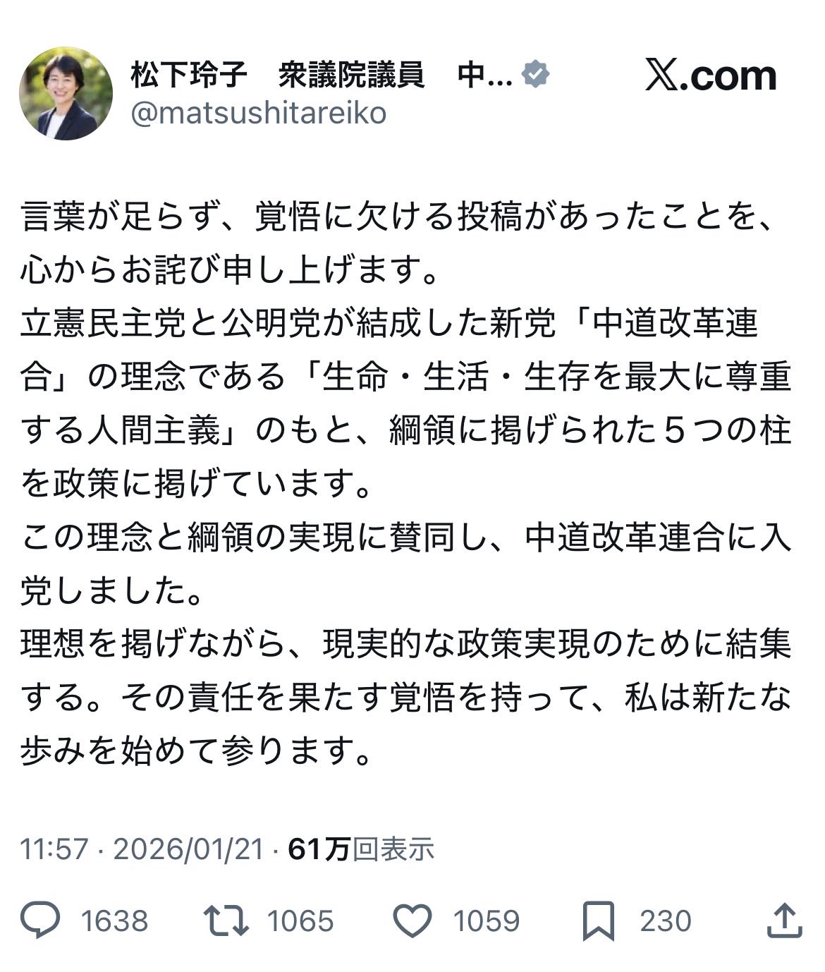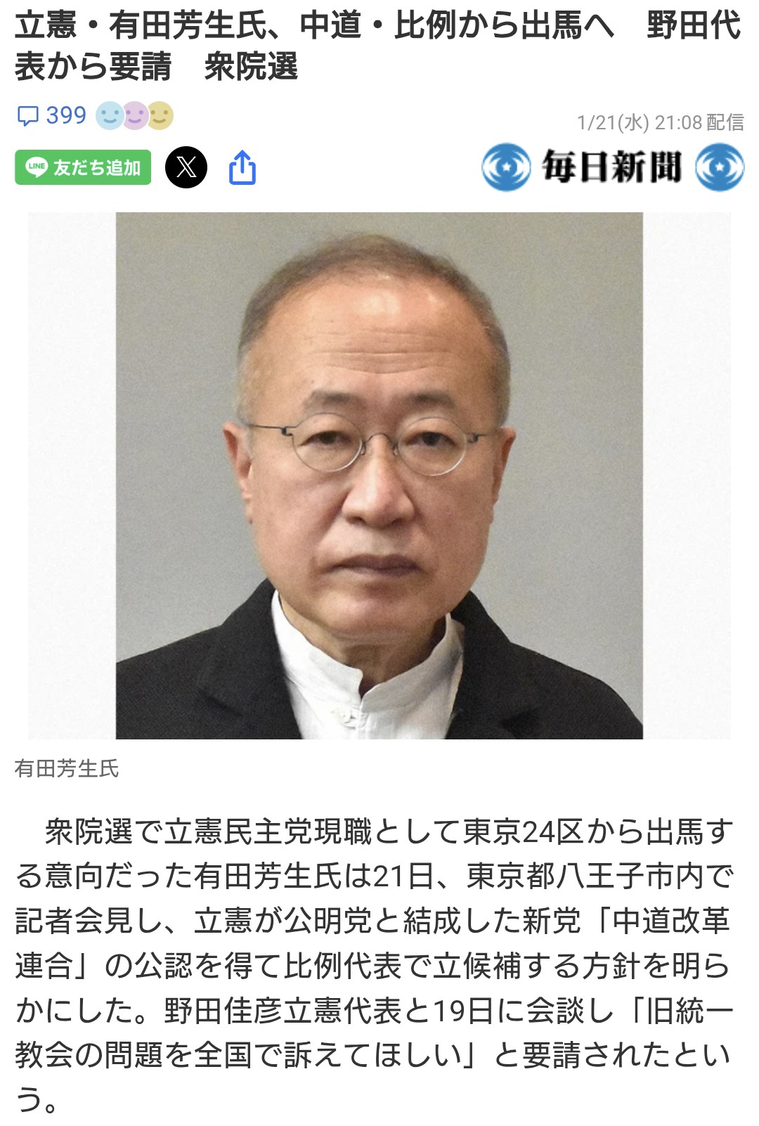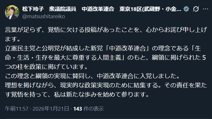 | … | 30無念Nameとしあき26/01/21(水)23:02:31No.1381813735+>それもあるけど中革連になるのは衆院だけで参院は公明立民そのままなので |