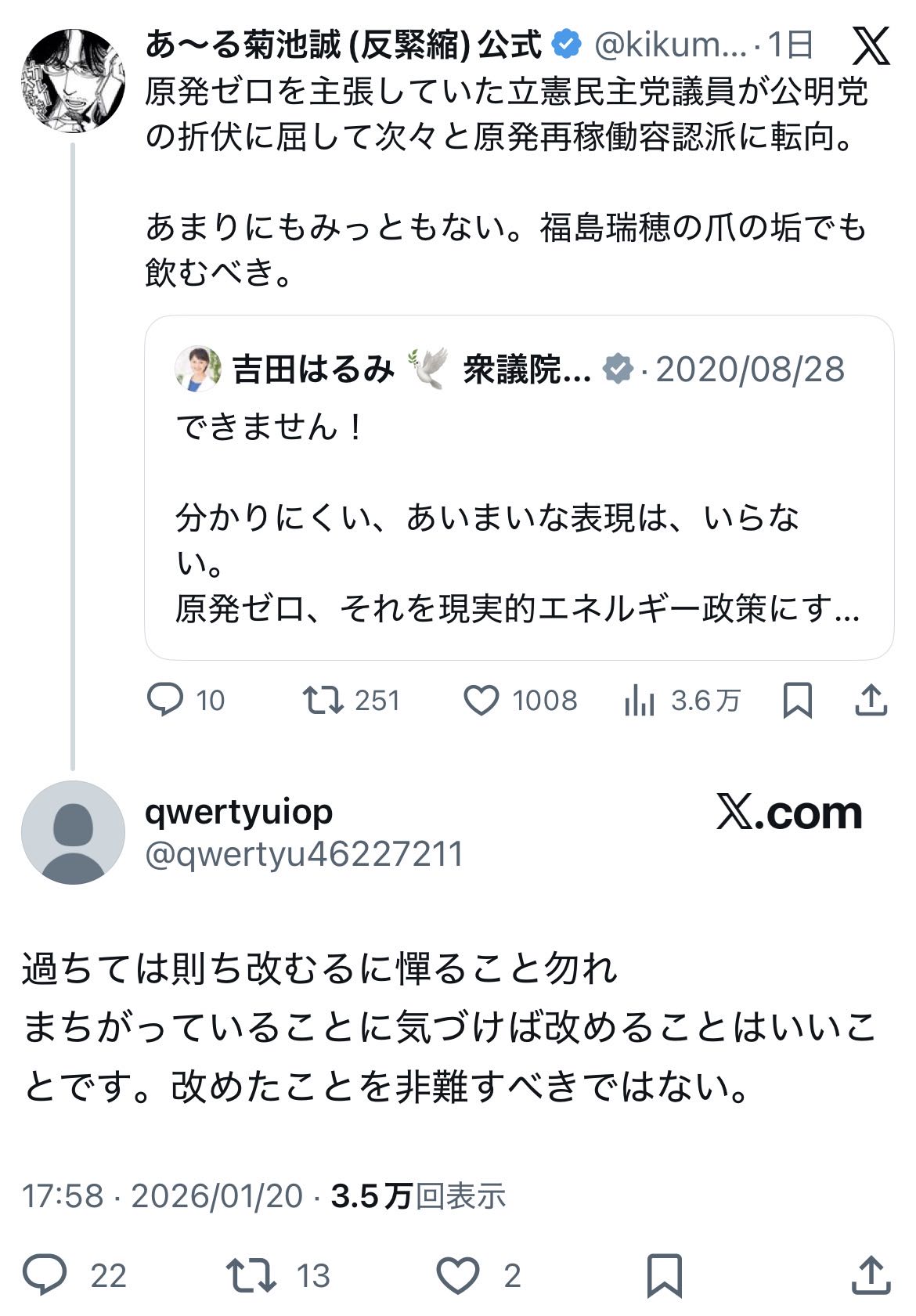 | … | 14無念Nameとしあき26/01/21(水)22:47:58No.1381809781そうだねx2 1769003278546.jpg-(110271 B) 立憲の連中並ばせて9条改憲原発再稼働!って叫ばせた方がいい |