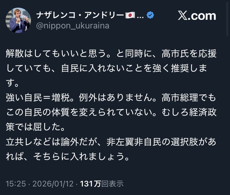 | … | 68無念Nameとしあき26/01/21(水)23:25:36No.1381819235+>信念も矜持も政治家としての志も何もない |
