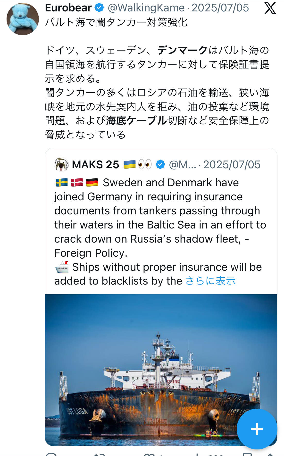 | … | 30無念Nameとしあき26/01/21(水)23:05:18No.1381814415そうだねx8 1769004318557.jpg-(266113 B) いつもならロシアの闇タンカーの仕業だがさて |