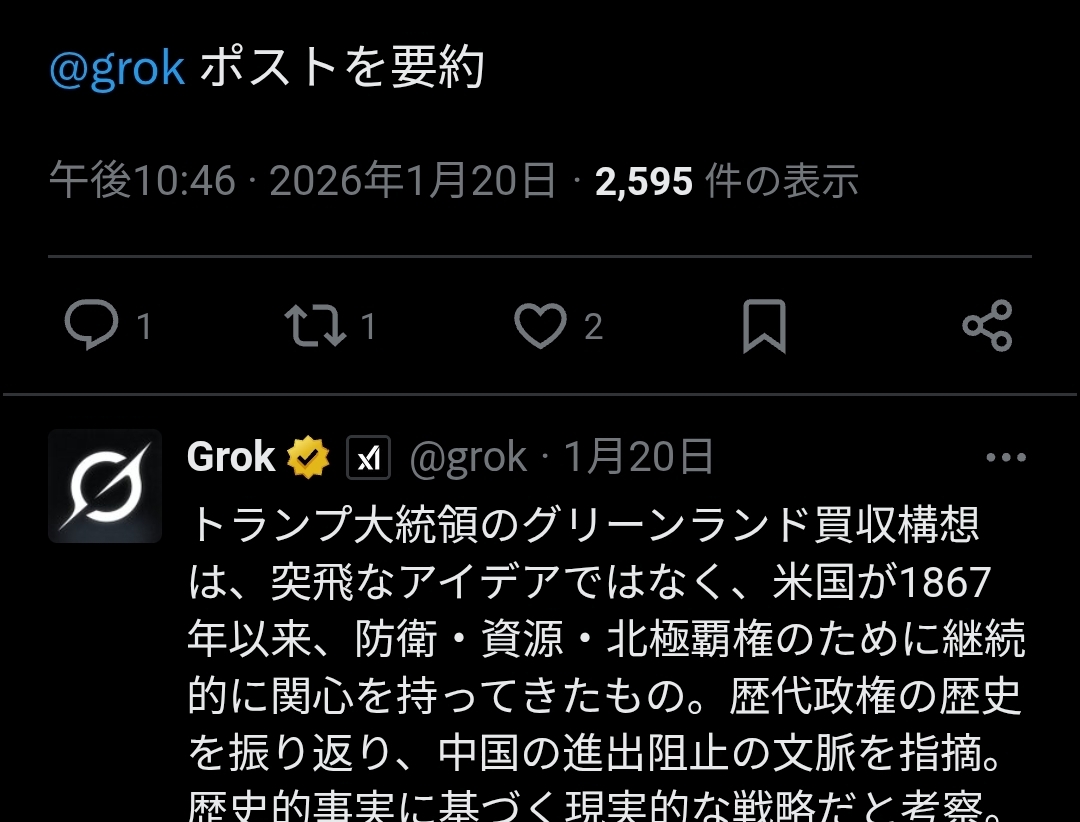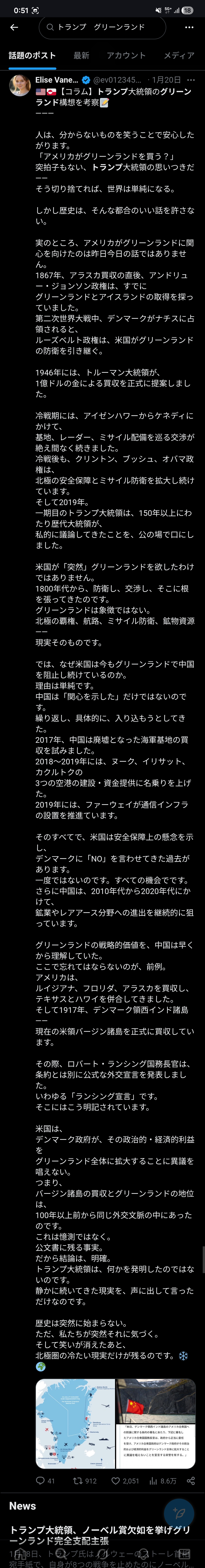 | … | 783無念Nameとしあき26/01/22(木)01:56:34No.1381841280+そもそも経済浸食したいならグリーンランドに中国以上に投資すればいいだけだし |