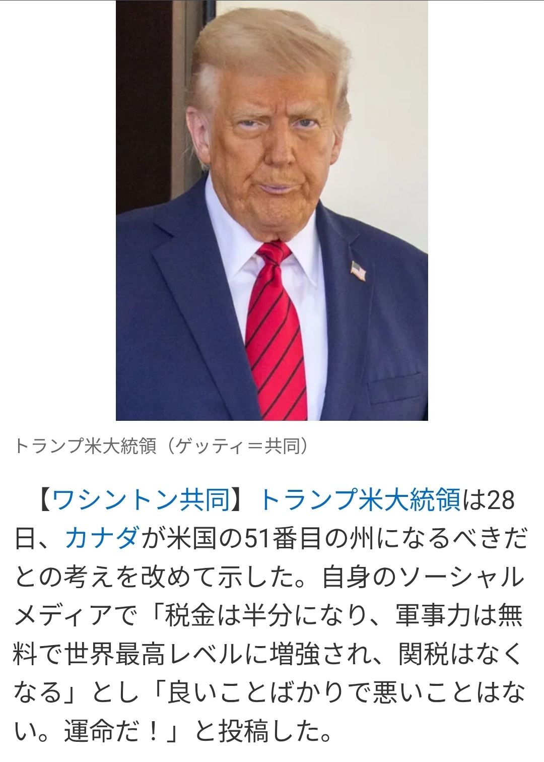 | … | 10無念Nameとしあき26/01/21(水)22:56:53No.1381812271そうだねx11 1769003813366.png-(2394165 B) トランプ大統領はカナダとのすべての貿易交渉を打ち切ると宣言 |