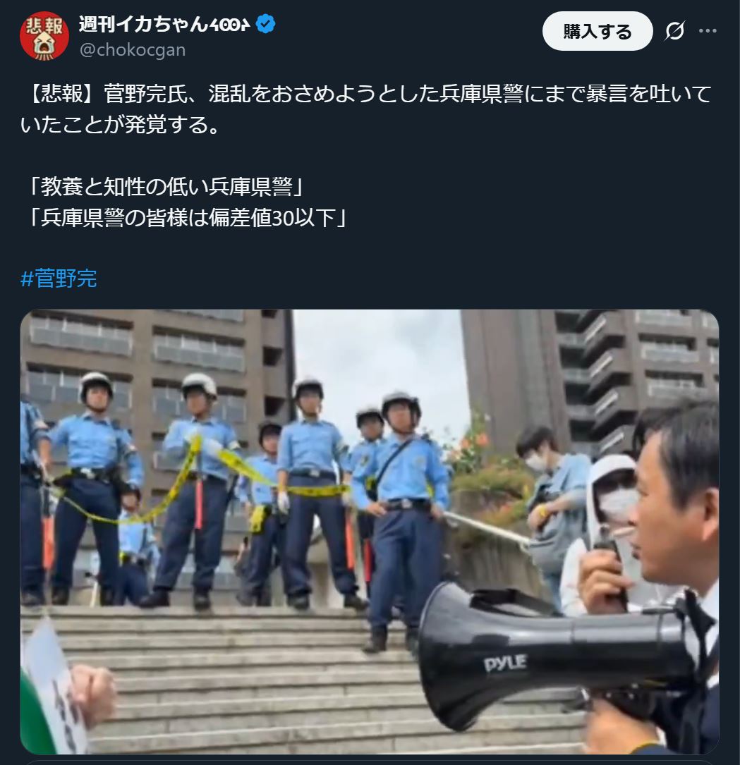 | … | 30無念Nameとしあき26/01/22(木)04:46:49No.1381847489+>>そこだけ切り取って菅野が糞みたいなイメージ操作すんなよ元彦信者 |