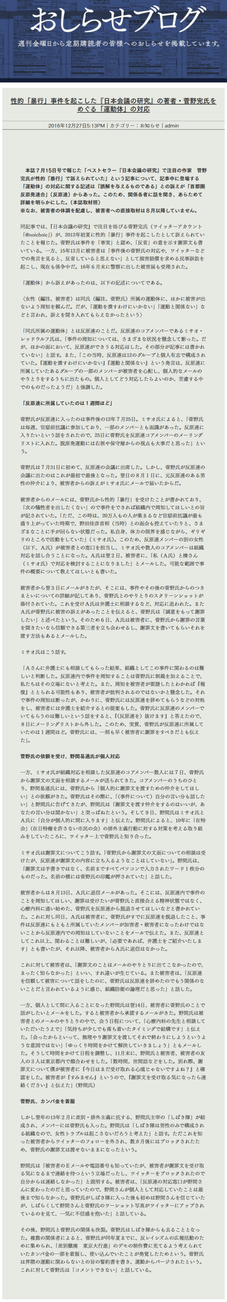 動画は菅野完と仲間になろうとすりよったけれど拒絶された結果プライドが傷つき敵対し始めた時代