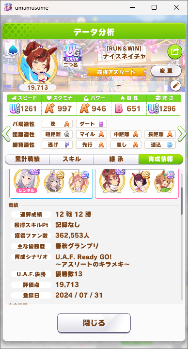 | … | 71無念Nameとしあき26/01/22(木)14:34:17 ID:NYi31ImYNo.1381908781+ 1769060057257.png-(237820 B) 3人目育成する余裕なかったから一昨年作ったネイチャさん出してますわ |