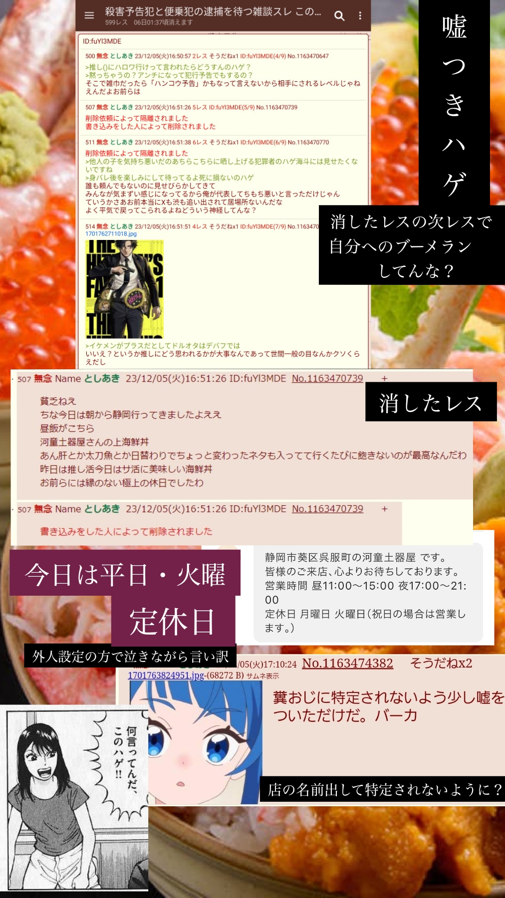 | … | 101無念Nameとしあき26/01/22(木)19:30:37No.1381962458そうだねx6定休日知らなくて無知を晒したくせに逆ギレとかみっともなくて笑うわwww |