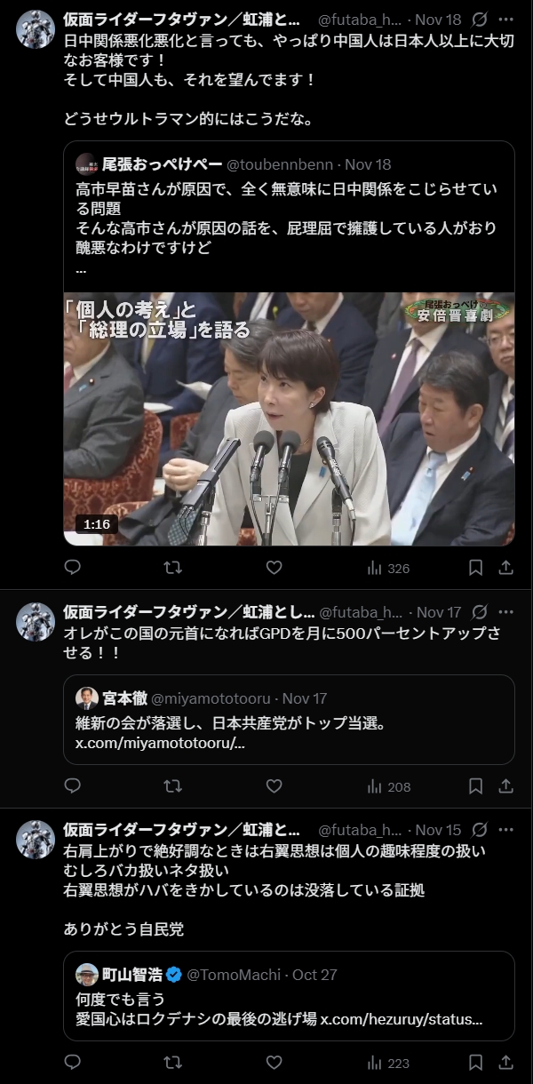 | … | 118無念Nameとしあき26/01/22(木)19:36:15No.1381963890そうだねx1スレ豚ってよっぽど与党が嫌いなんだな |