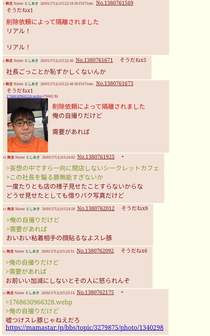 | … | 49無念Nameとしあき26/01/22(木)19:13:59No.1381958511+いつも思うんだけどなんて名前のどんな会社の社長やってるん? |
